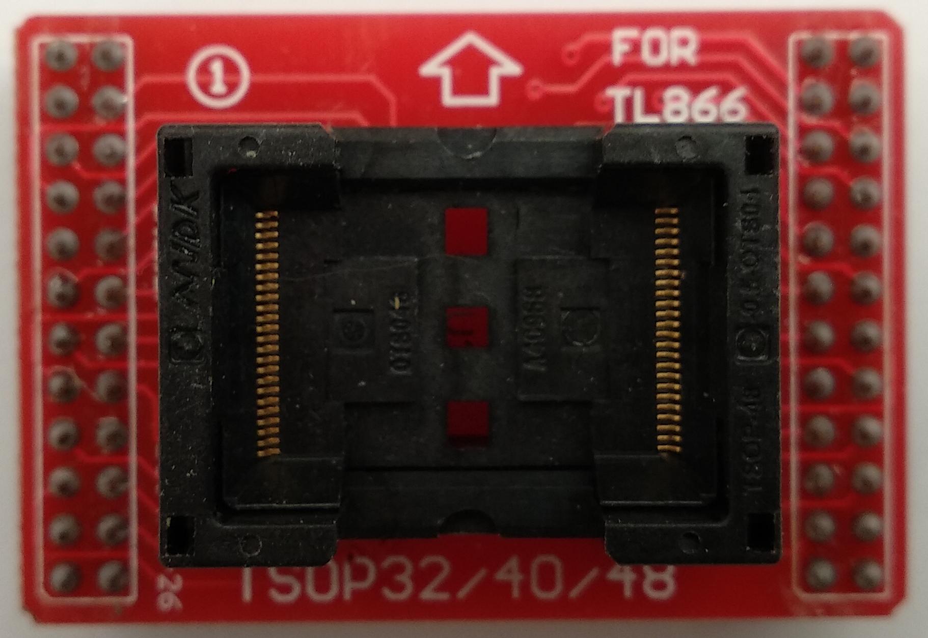 Parts for adapters are not included in the BOM file but it is just a few pin headers and TSOP-48 socket. TSOP-48 socket can be bought on https://www.ebay.com. Another option is to order a TSOP-48 adapter for TL866.