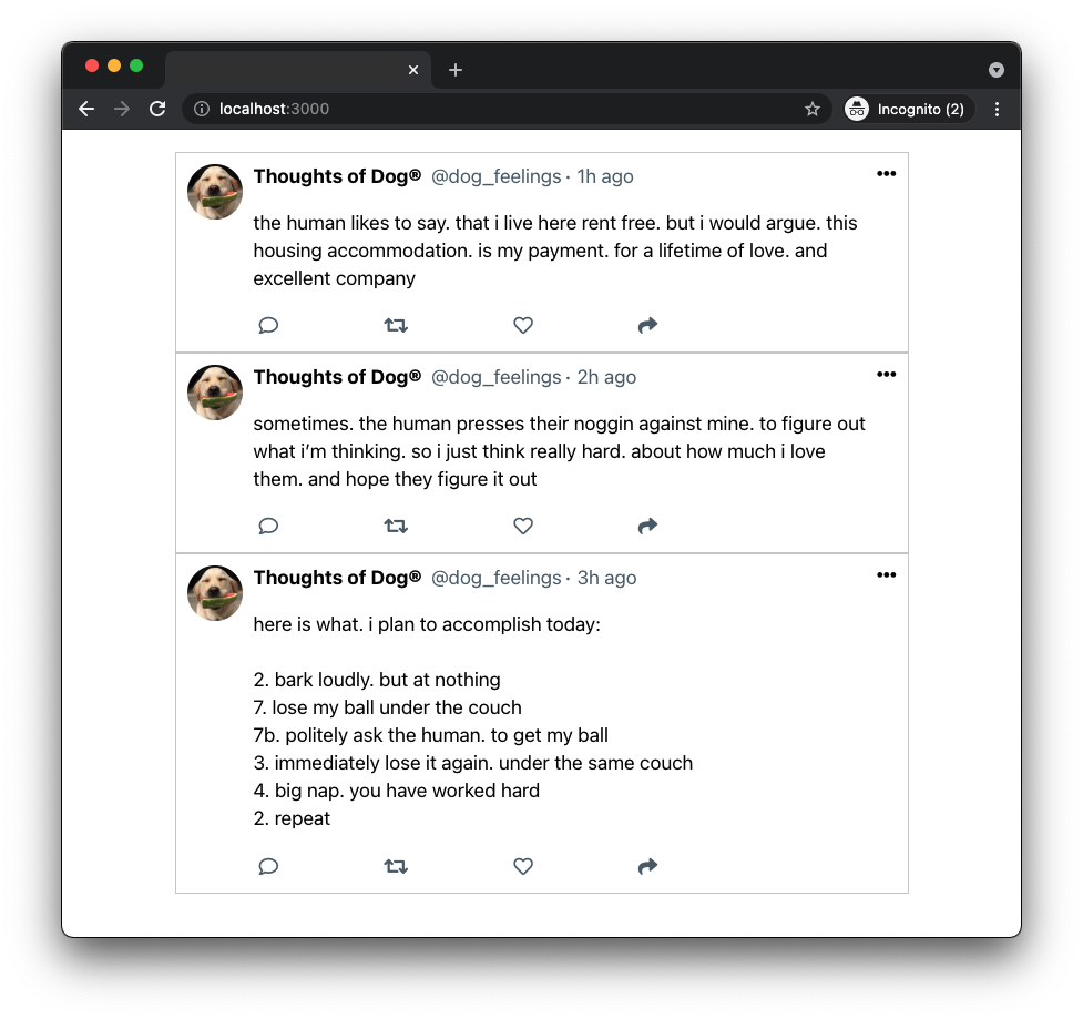 Una vez hecho esto, su componente Tweet debería mostrar el siguiente contenido: