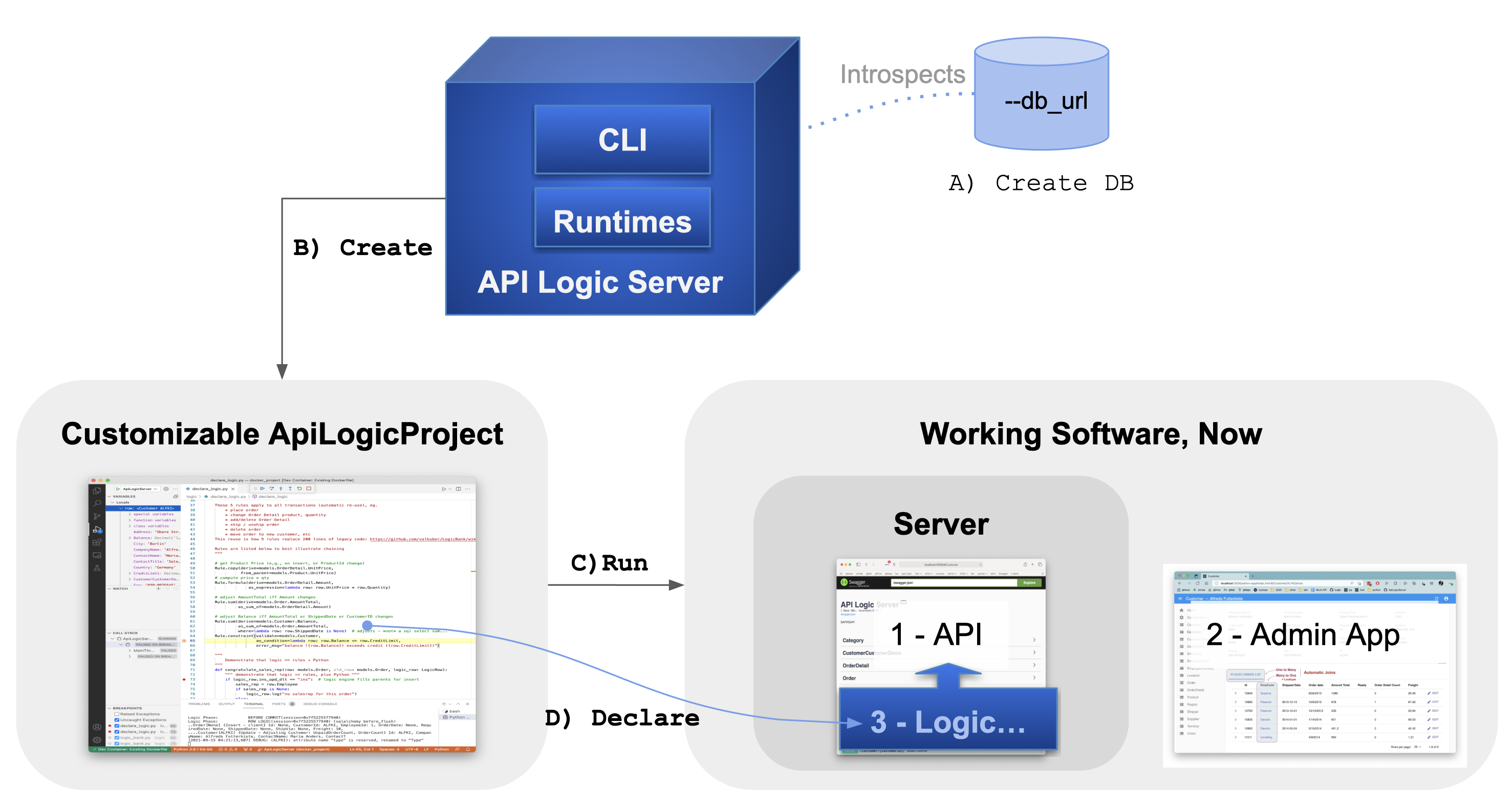 In fact, this system was not coded by hand - it was created using API Logic Server -- an open source project providing: