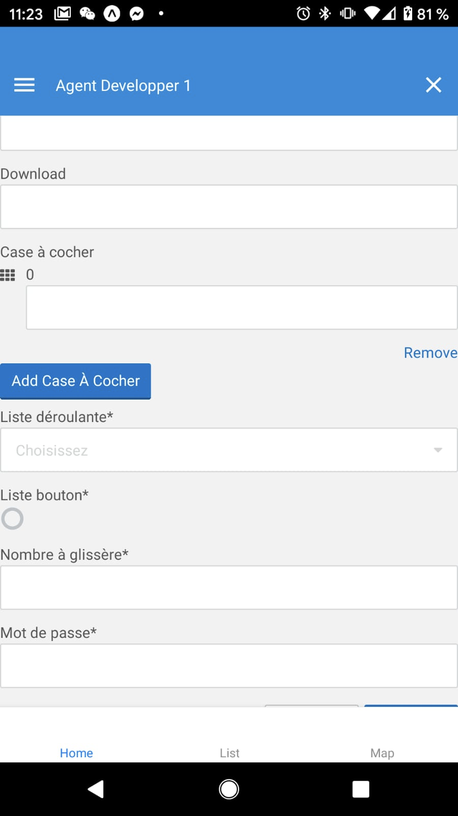 "jsonSchema": "{“description”:”“,”properties”:{“Case à cocher”:{“items”:{“enum”:[“Info 1”,” Info 2”,” Info 3”],”type”:”string”},”title”:”Case à cocher”,”type”:”array”,”uniqueItems”:true},”Date”:{“format”:”date”,”title”:”Date”,”type”:”string”},”Download”:{“format”:”data-url”,”title”:”Download”,”type”:”string”},”Liste bouton”:{“enum”:[“Info 1”,” Info 2”,” Info 3”],”title”:”Liste bouton”,”type”:”string”},”Liste déroulante”:{“enum”:[“Info 1”,” Info 2”,” Info 3”],”title”:”Liste déroulante”,”type”:”string”},”Mot de passe”:{“title”:”Mot de passe”,”type”:”string”},”Nombre”:{“title”:”Nombre”,”type”:”number”},”Nombre à glissère”:{“title”:”Nombre à glissère”,”type”:”integer”},”Texte”:{“title”:”Texte”,”type”:”string”}},”required”:[“Texte”,”Nombre”,”Date”,”Case à cocher”,”Liste déroulante”,”Liste bouton”,”Nombre à glissère”,”Mot de passe”],”title”:”Question multi info”,”type”:”object”}",
