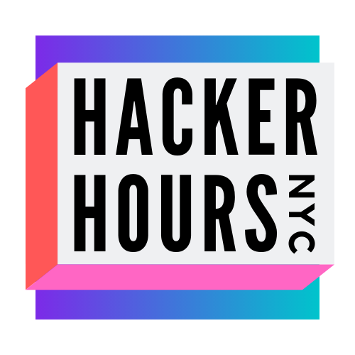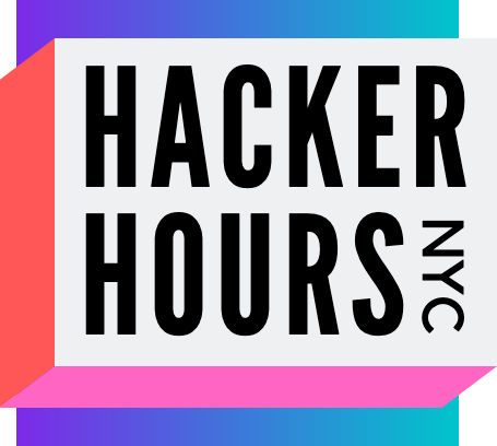 I wanted a vector version, which Canva doesn't provide. Why do things the easy way (an illustration program) when you can do it the hard way (CSS transforms), right? Also, figured that an HTML version will be easier to customize if other Hacker Hours chapters want to adopt it but replace the "NYC". The HTML version: