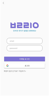 - Login 화면: 애플리케이션 자체 계정 또는 Google 계정을 이용하여 로그인 할 수 있다.