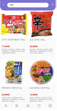 - Kotlin으로 구현된 애플리케이션은 2번의 방법으로 받아온 데이터들을 이용하여 제품 정보 및 최저가와 검색 결과를 사용자에게 보여준다.
