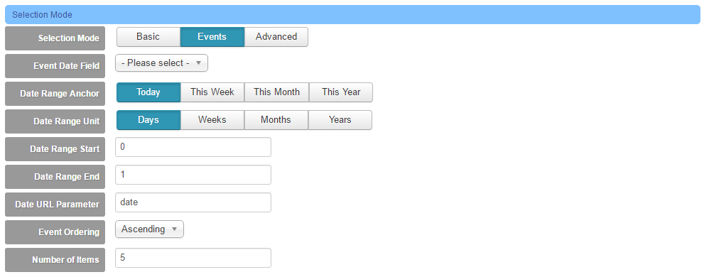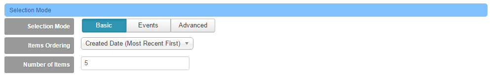 - Basic: sets the number of items and ordering by date, title, category, or random