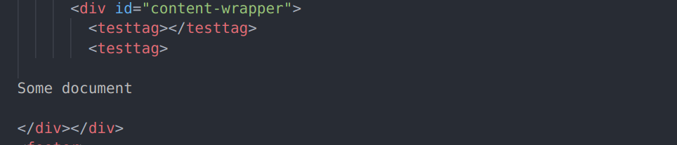 The second testtag's closing bracket is removed, leading to some parsing error downstream from cheerio.