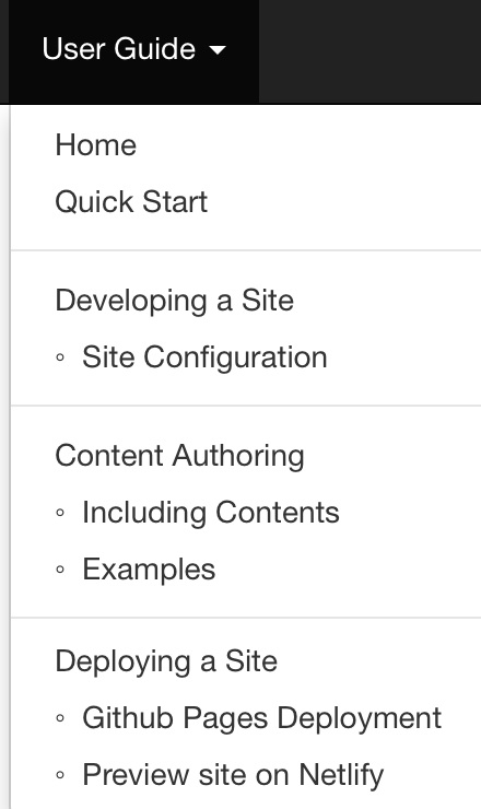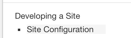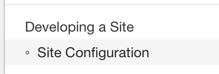 | <li><a href="{{baseUrl}}/userGuide/siteConfiguration.html">Site Configuration</a></li> | ||