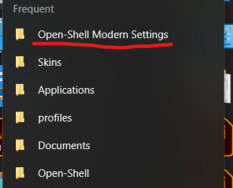 The Open-Shell Modern Settings folder for Windows Settings results automatically populates in the "Frequent" list in File Explorer, even without manually navigating to the shell folder.