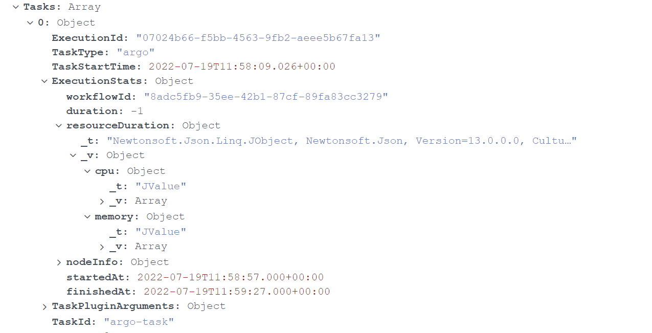 Execution stats not working with objects of objects in mongo(it was storing it as a jobject) so parsing it as strings instead.