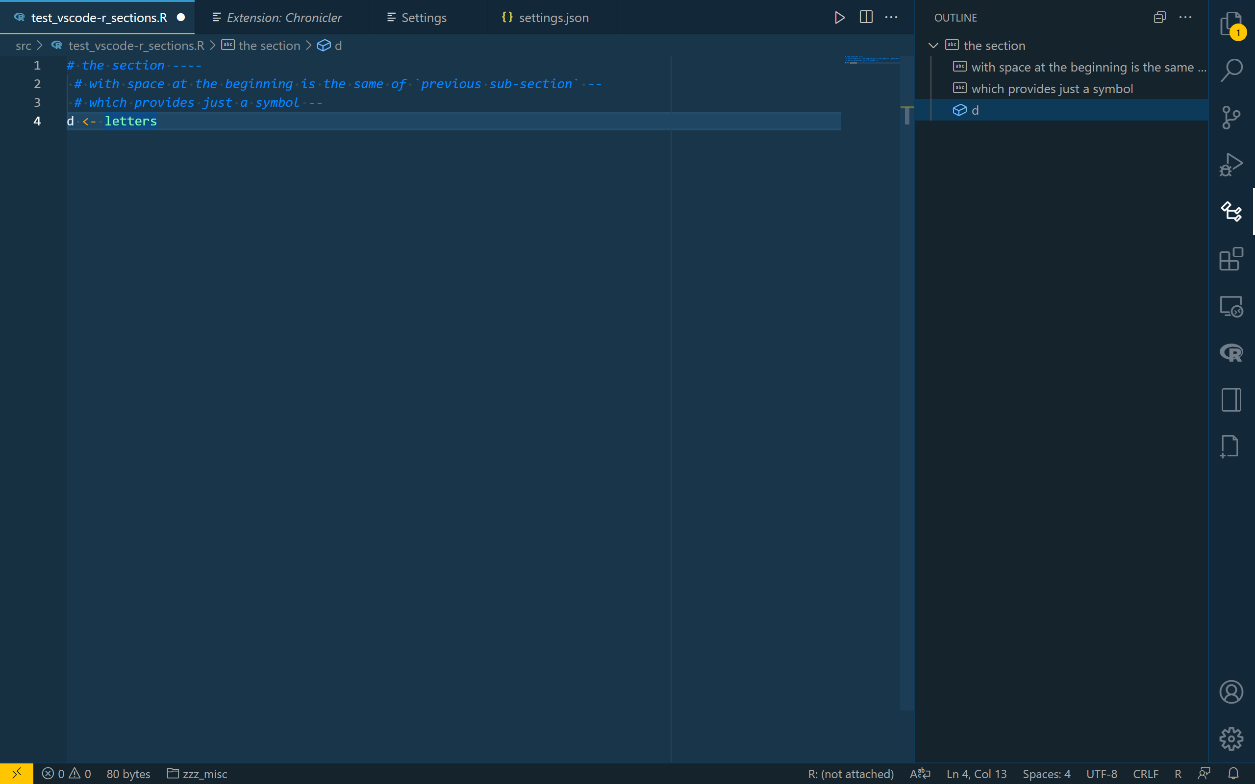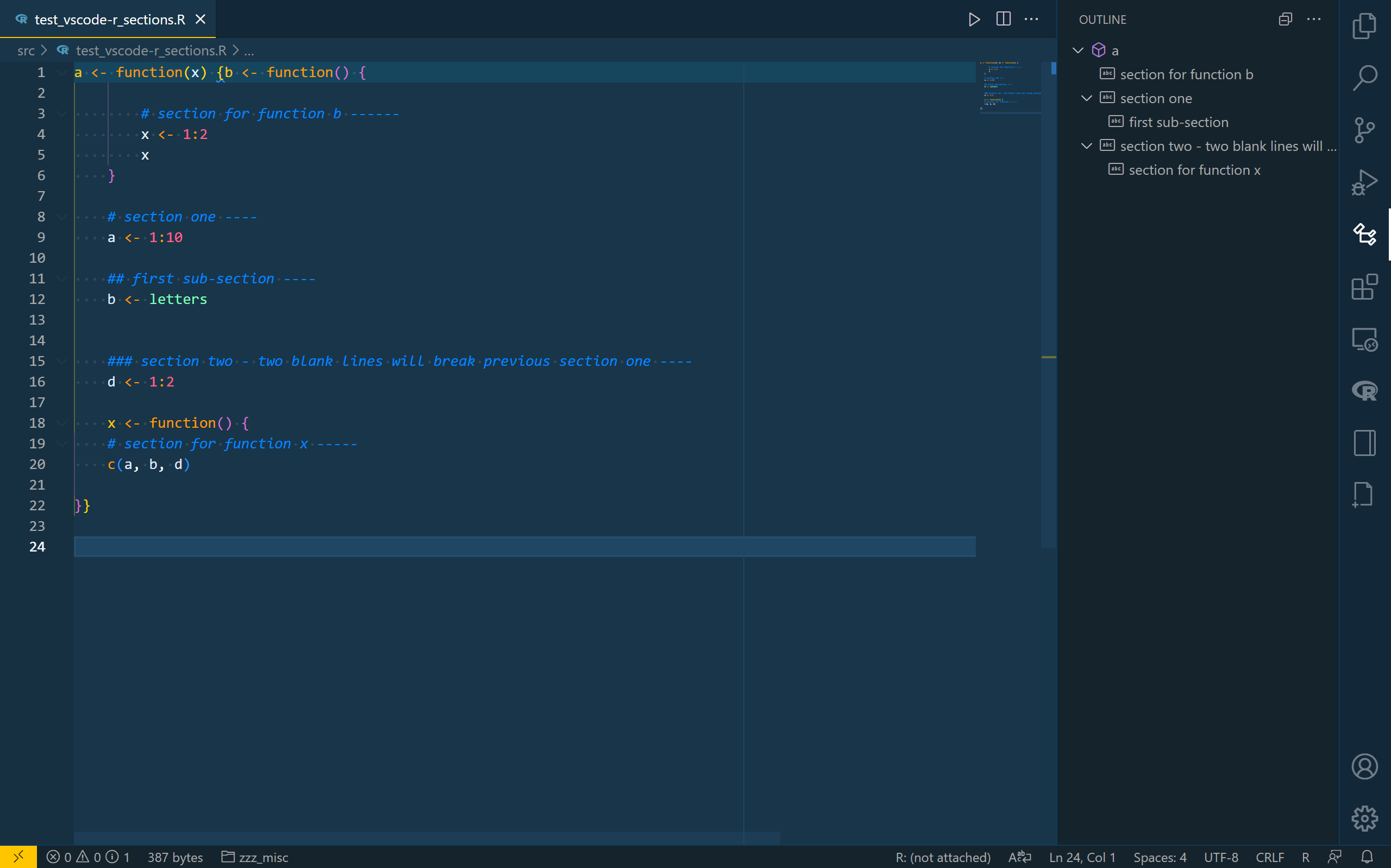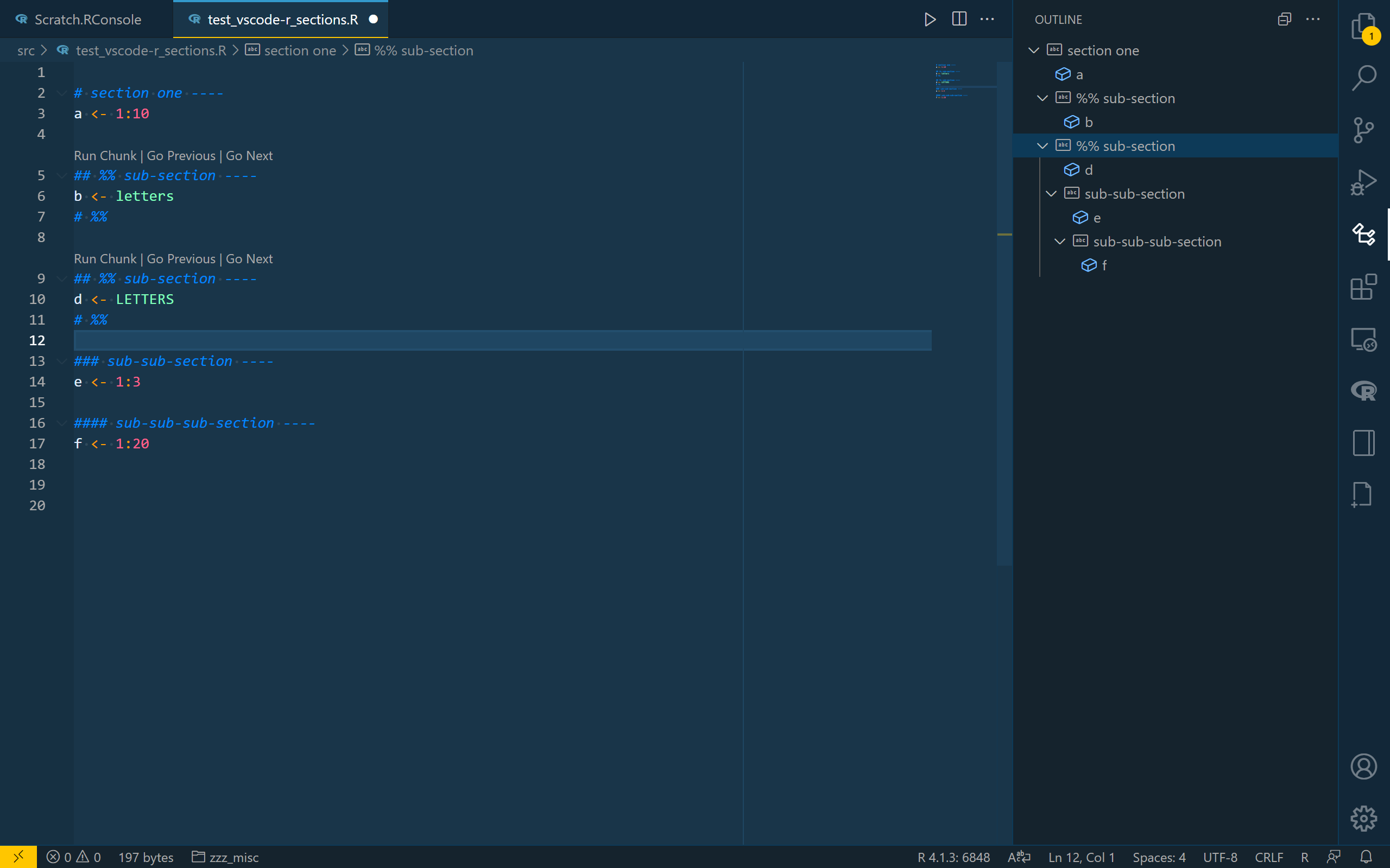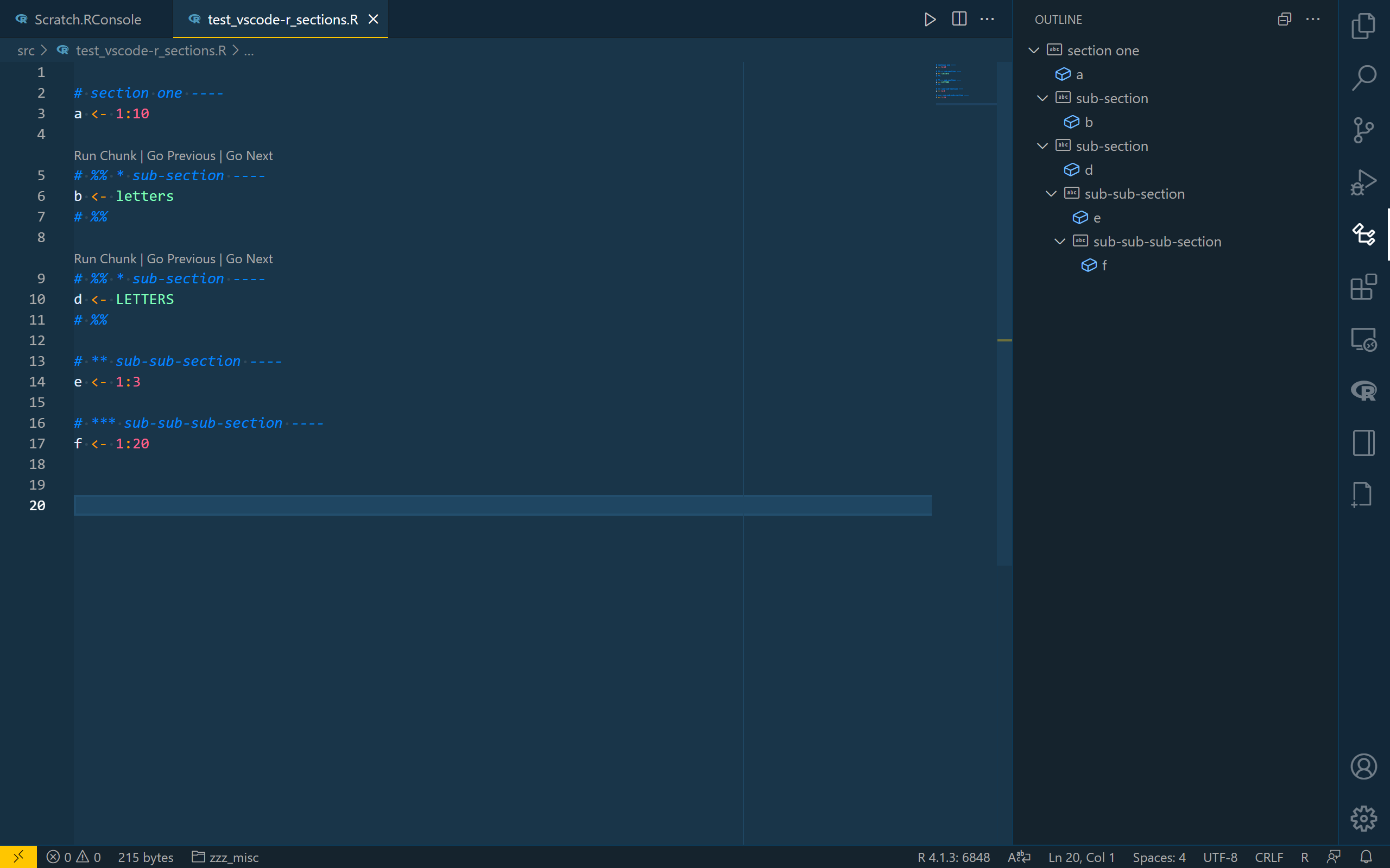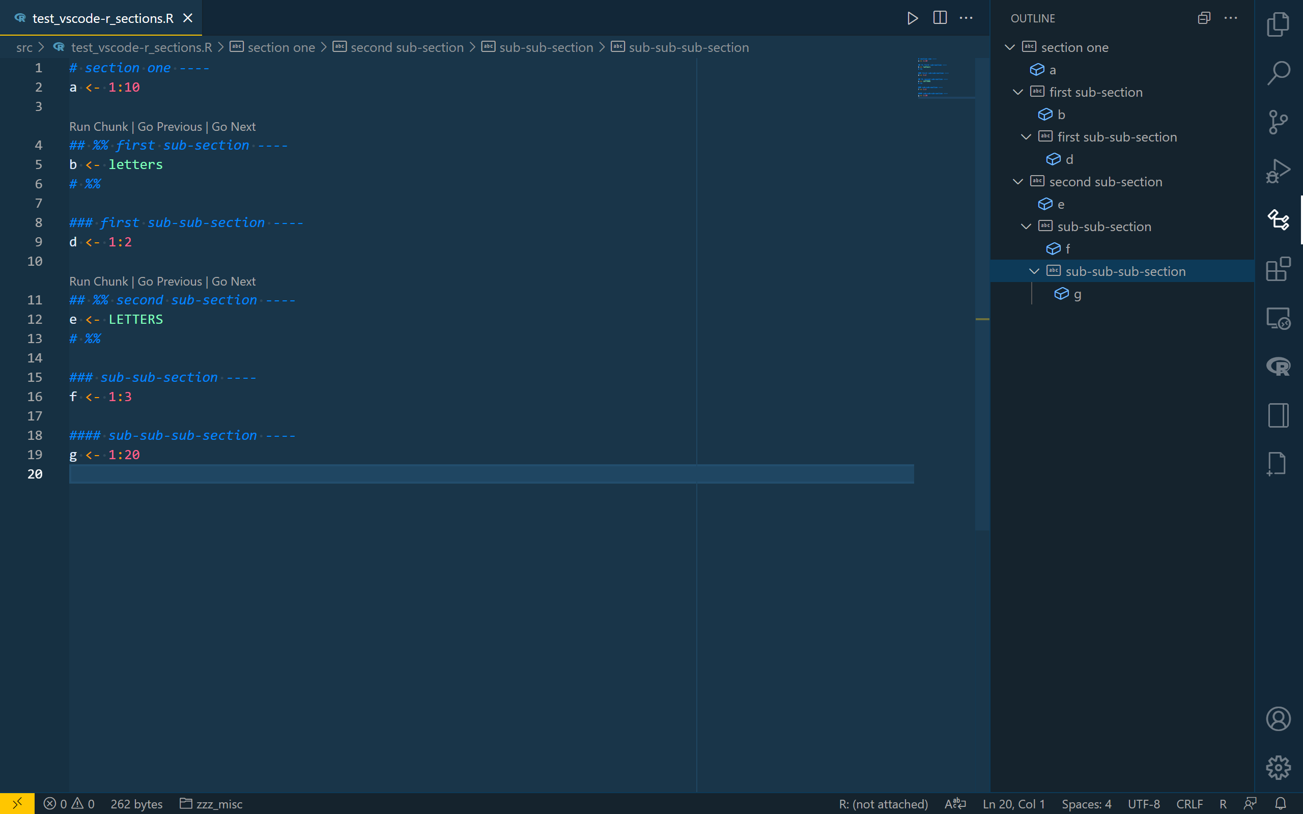 %%which is indicative of markdown chunk in R files implemented by REditorSupport/vscode-R#662.Here is some examples (see the outline panel):