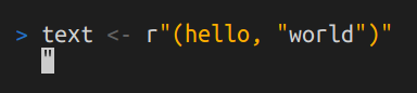 R 4.0 introduces raw string in the form of r"(hello, "world")" (see https://stat.ethz.ch/R-manual/R-devel/library/base/html/Quotes.html). vscode-R does not correctly handle such raw strings in the following aspects: