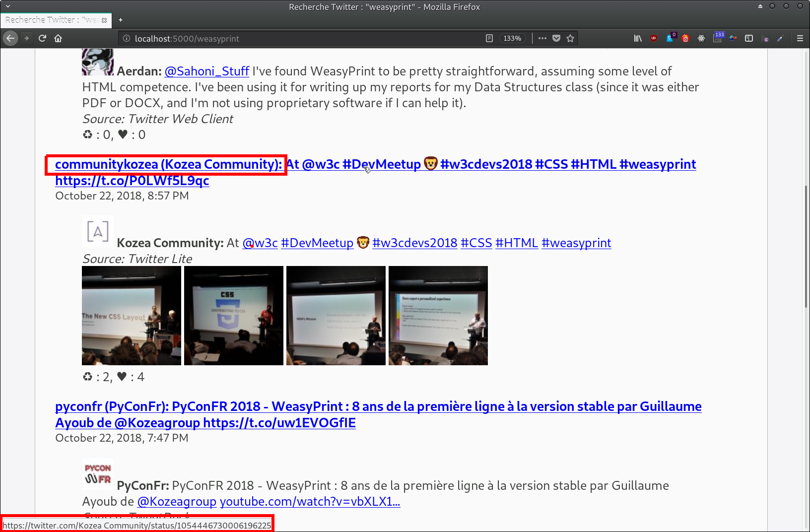[Twitter] the name used in url is the display name and not the username #17