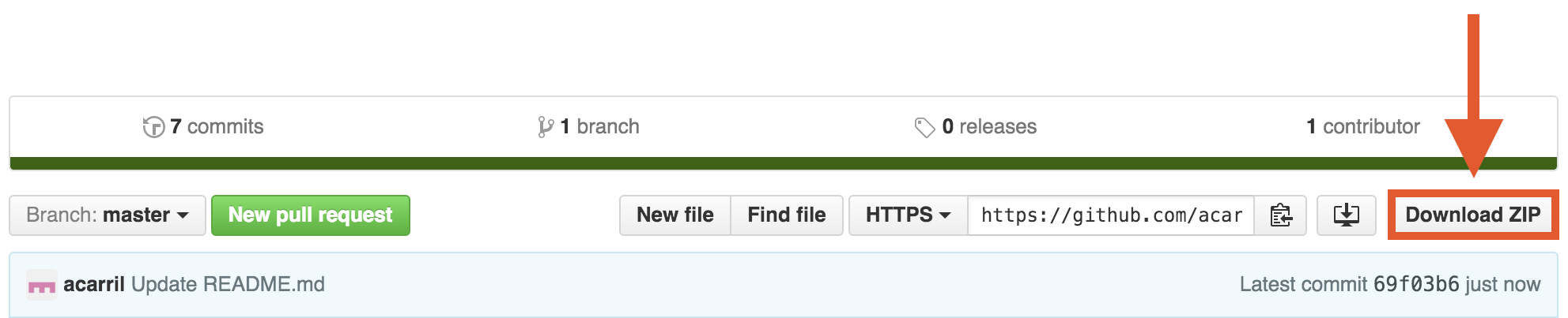 The first step is simply to download this repository to your computer. There's also a download button if you scroll up this page, shown in this next screenshot in case you missed it: