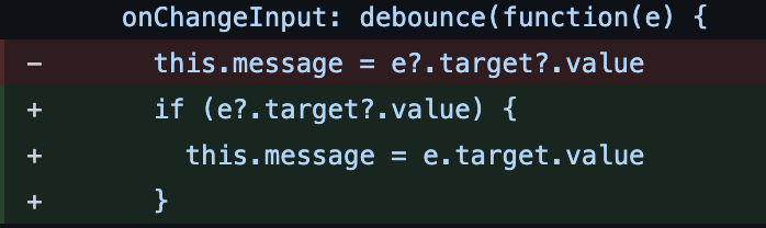 Pls, add empty string check. After removing current message at least one symbol is still remaining in 'message' data property, but it is actually empty in textarea. When I click 'send' button it will send text from 'message' prop