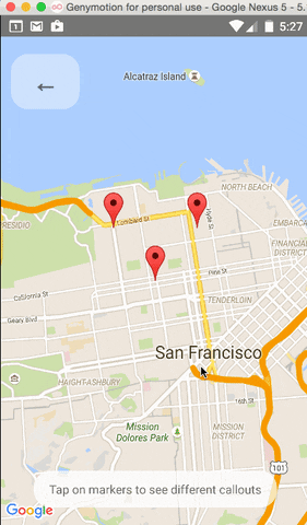 var MapView = require('react-native-maps');This MapView component is built so that features on the map (such as Markers, Polygons, etc.) are specified as children of the MapView itself. This provides an intuitive and react-like API for declaratively controlling features on the map.