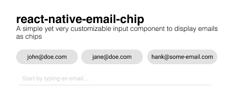 yarn add @arelstone/react-native-email-chipimport EmailChipInput from '@arelstone/react-native-email-chip';