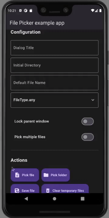 See the API section of the File Picker Wiki or the official API reference on pub.dev for further details.