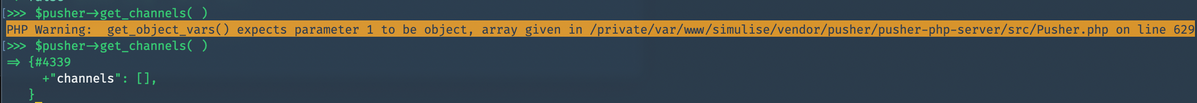 {"channels": {}}instead of php encoding empty arrays as{"channels": []}.