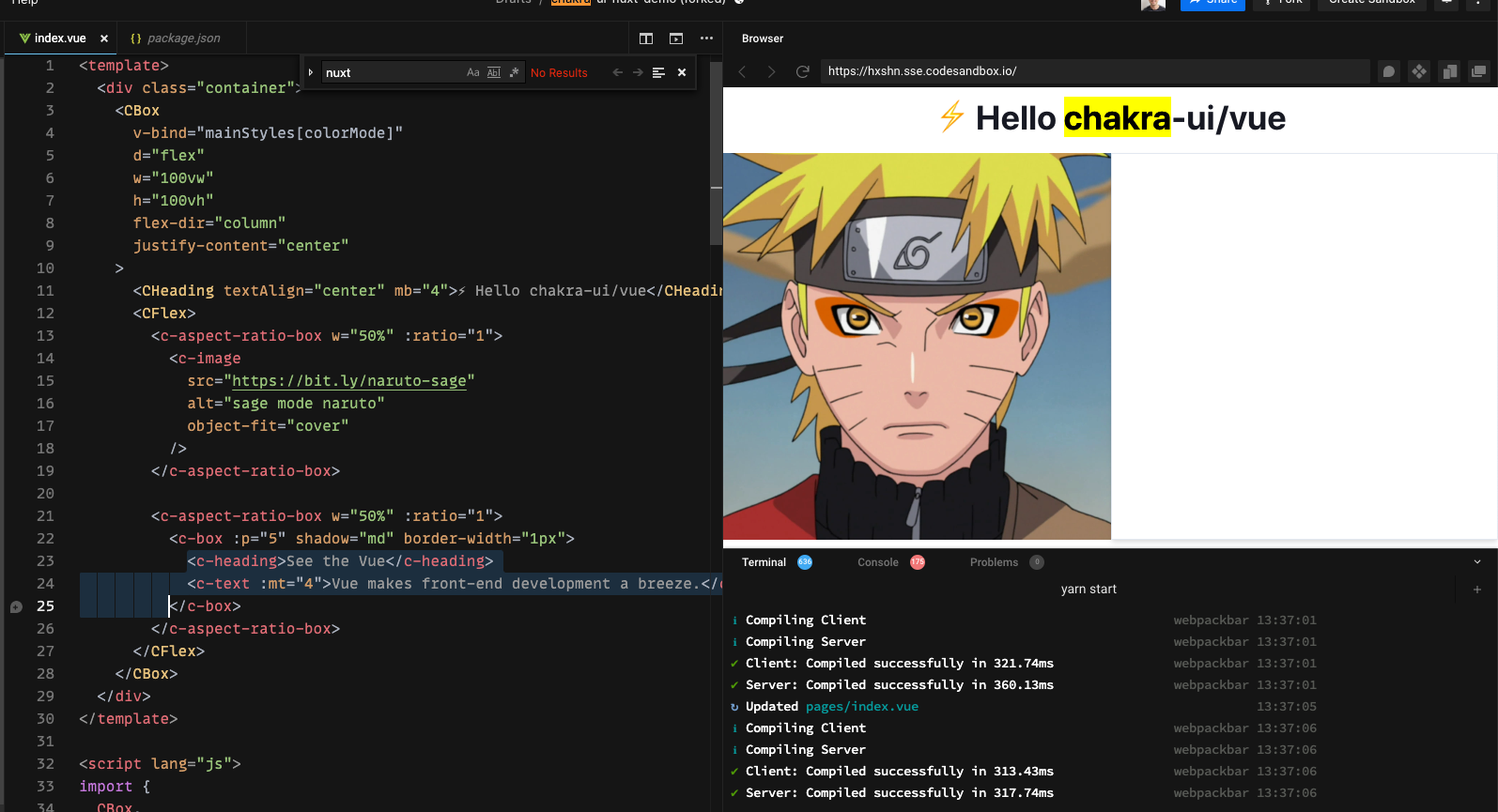 1. Go to https://codesandbox.io/s/chakra-ui-nuxt-demo-forked-hxshn?file=/pages/index.vue