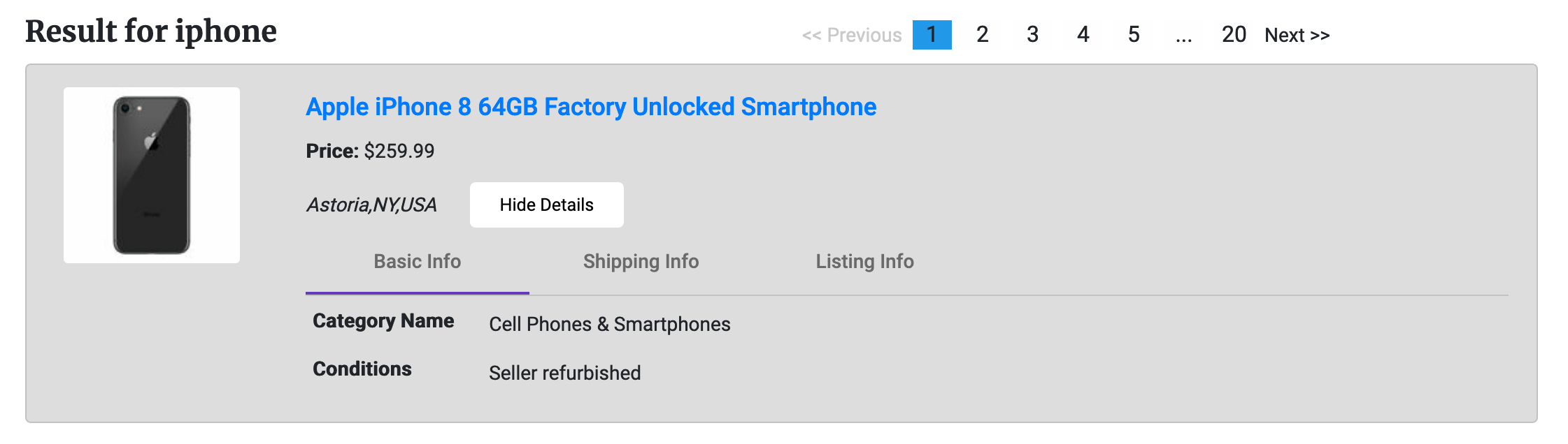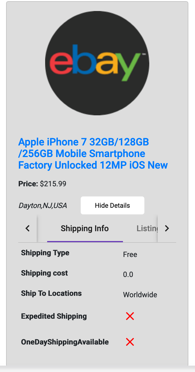 A web application can enable users search items details and fetch items' cards from eBay API and others.