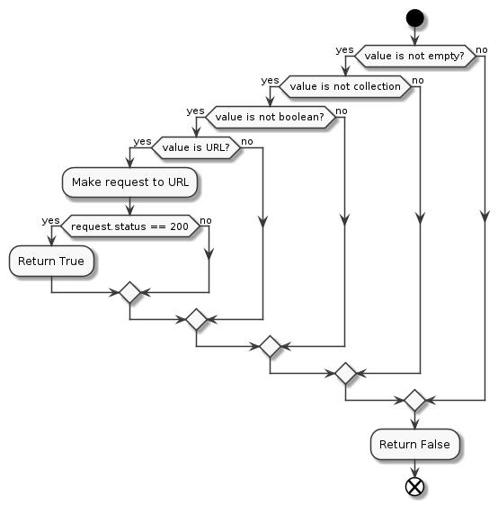 Parameters: value (str) – Variable to test. Returns: True if variable is an existent URL, False otherwise. Return type: bool