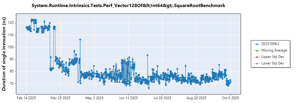 System.Runtime.Intrinsics.Tests.Perf_Vector128Of<Int64>.SquareRootBenchmark