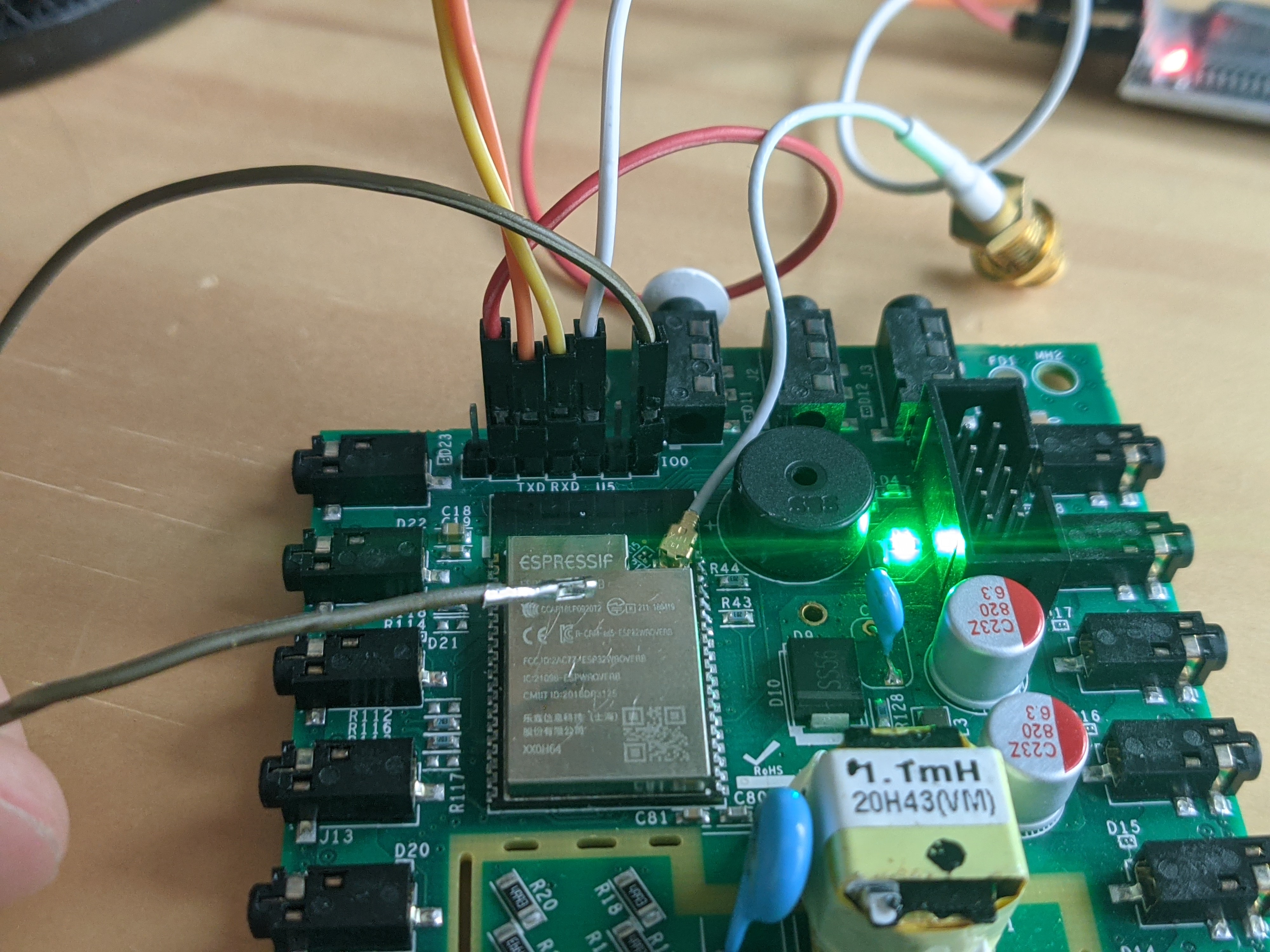 Hold the modified end of the cable in IO0 to the metal shield on the ESP32. If you'd like, you can tape it down so that you have both hands free.
