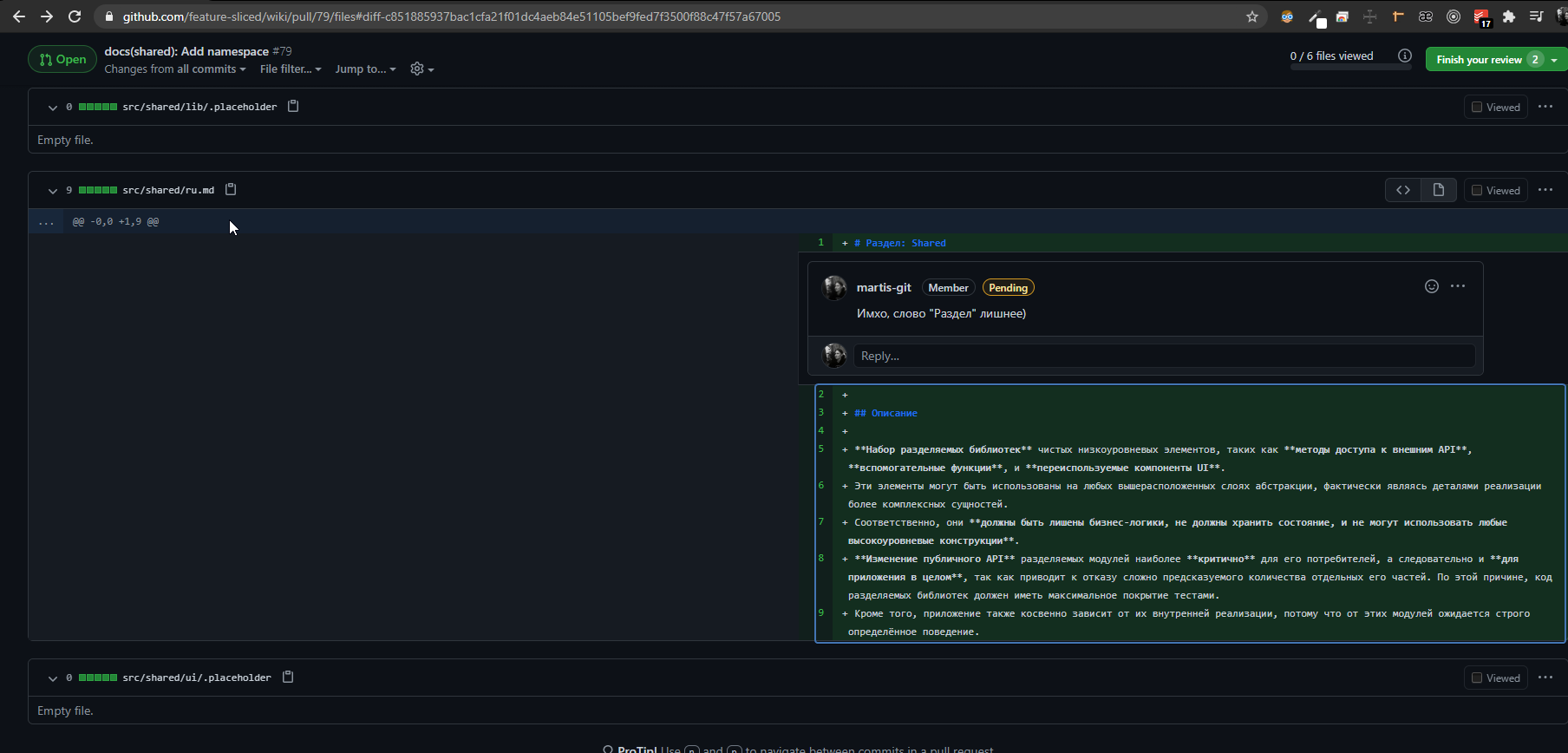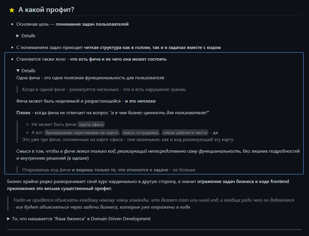 - Да, понимаю что у тебя была подводка на основании примеров, но надо бы как-то более структурированно разделить и описать что есть фича (более содержательно)