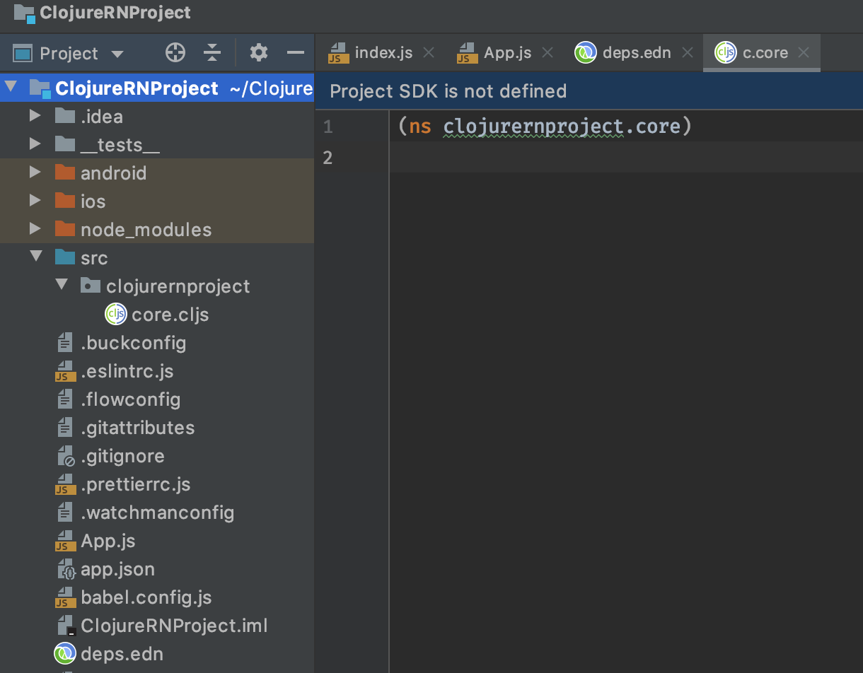 OK, now we have RN project and we want to run the same app but with clojure