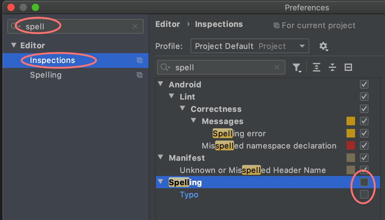 Optional turn off a spelling