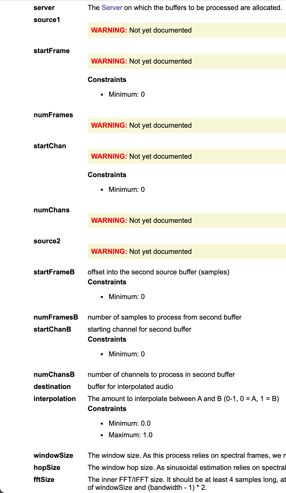I'm seeing varying names for BufAudioTransport arguments in different places (JSON, YAML, SC class definition). Sometimes source1/source2 terminology, sometimes source/source2 and sometimes sourceA/sourceB. Below you can see what is coming out the JSON.