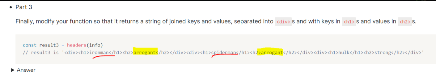 In this case, result should return **naive** for Spiderman. Since the object provided is such as below: ``` const info = { ironman: 'arrogant', spiderman: 'naive', hulk: 'strong' } ```