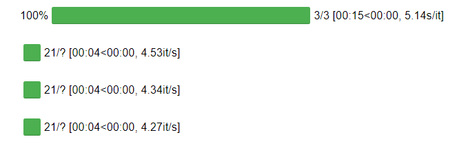 pipe(...)call inside anothertqdmloop. Without this the output looks like thiswhere each intermediate run produces a progress bar. This pollutes the output the more nested loops of inference are run. With the change the inner-most progress bar disappears after each run, allowing arbitrary number of calls to