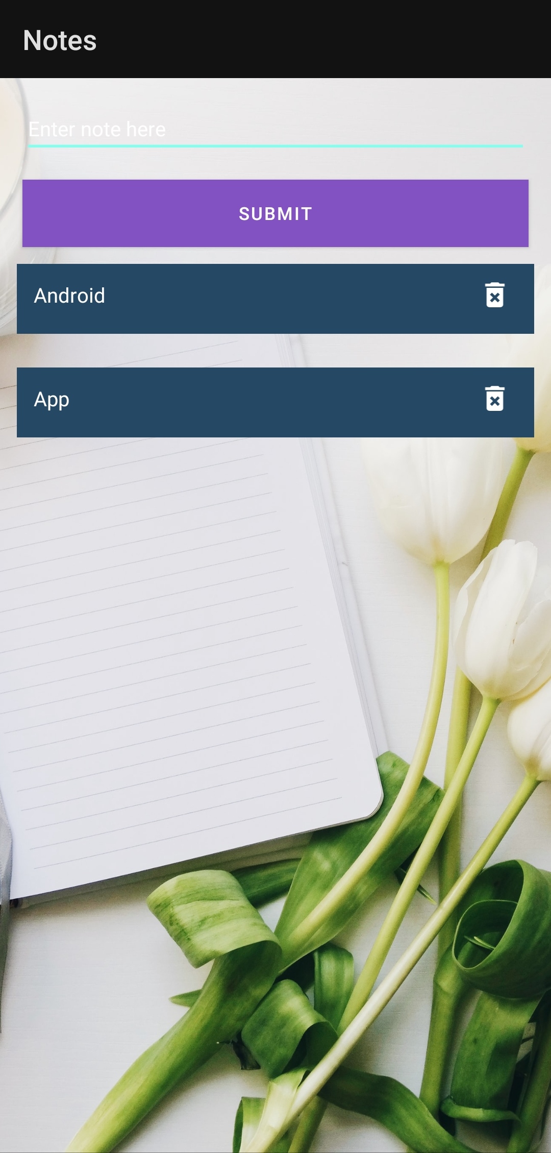 Notes_App Features Simple app that can store your notes. APK Click on the link for downloading : https://github.com/kshubham767/Notes_App/blob/f3a08ba517da33d31179a2b69e7f5ba4bf617404/app/release/app-release.apk Screenshot Permission No permission recuired