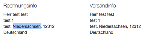 My case was: I have disabled the region-field in the checkout shipping form, but still, the region appeared in the order confirmation mail.