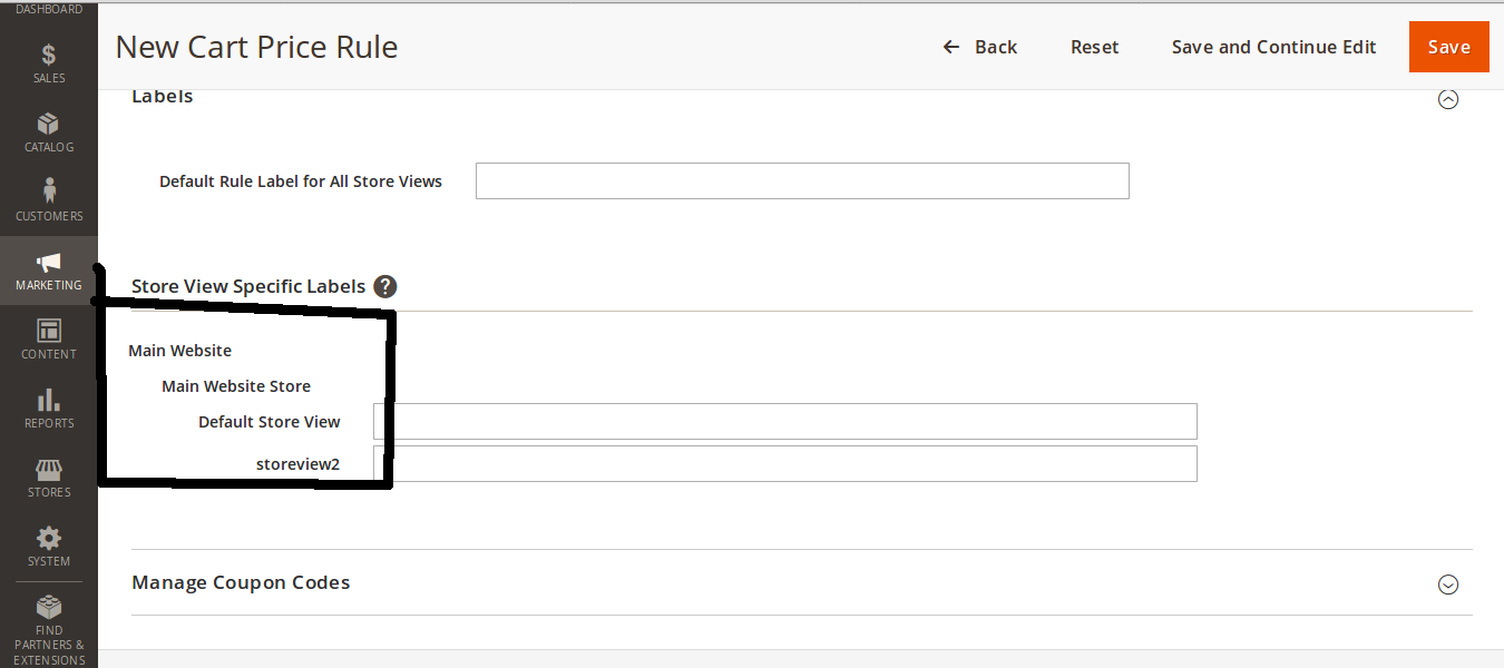 Main website label and main website store label not alignd proper overlapping in left navigation in admin panel during create New Cart Price Rule