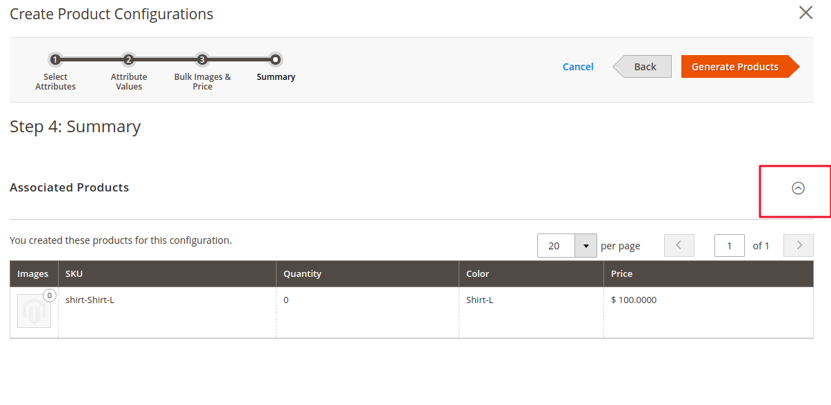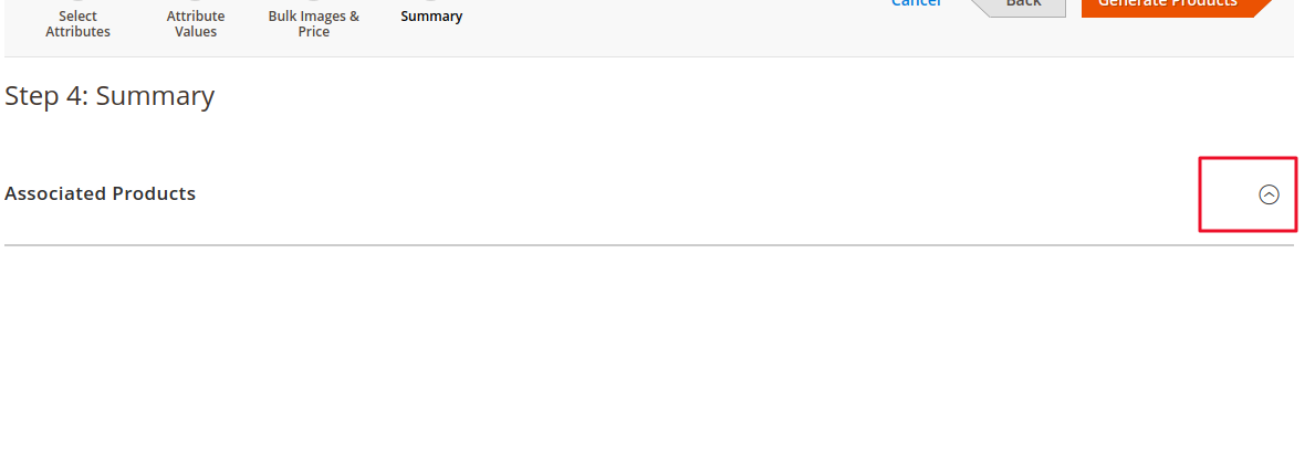 2. Select Attributes > Attribute Values > Bulk Images & Price > Summary.