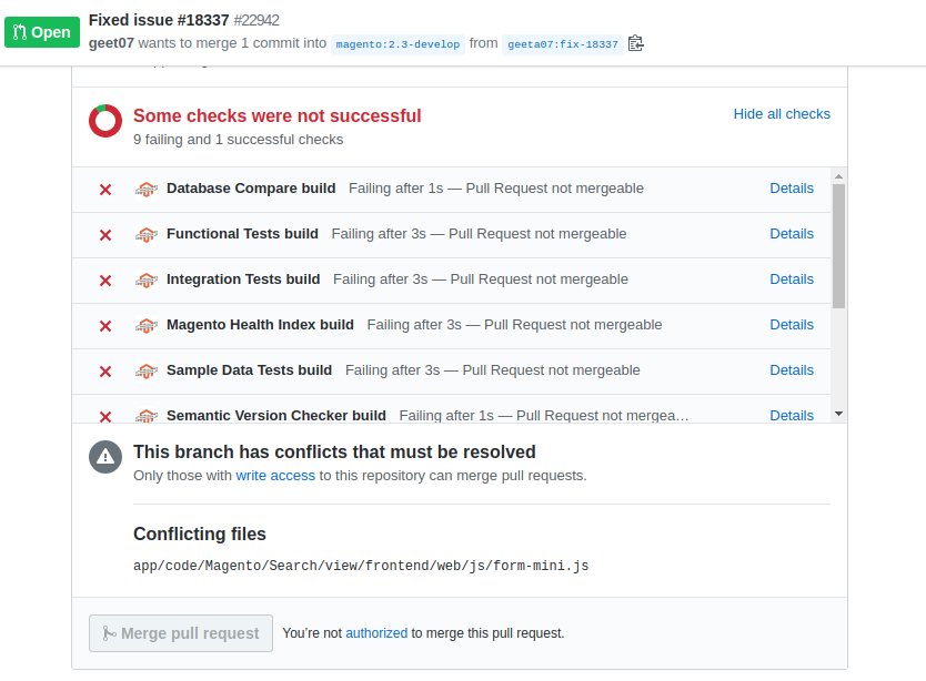 How can I merge the 2.3-develop into my working branch? There is no merge option enable for me. Can you please guide me |
