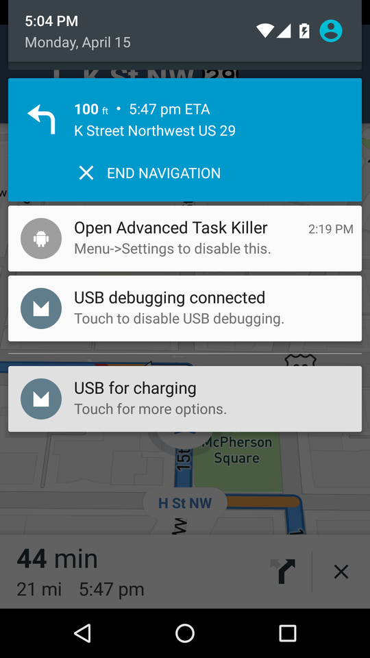 MapboxNavigationNotificationfix the duration remaining fromrouteProgress.durationRemaining()torouteProgress.currentLegProgress().durationRemaining()so both theSummaryModelandMapboxNavigationNotificationuse the same value. Took the opportunity to refactorMapboxNavigationNotificationand make it more testableScreenshots or Gifs