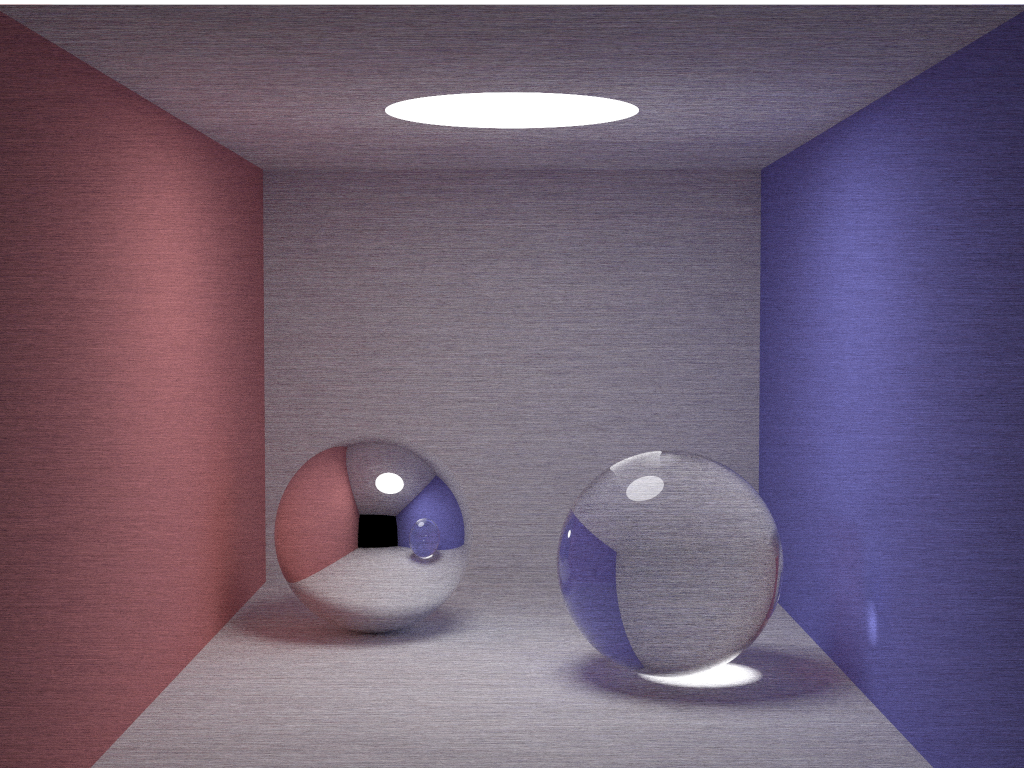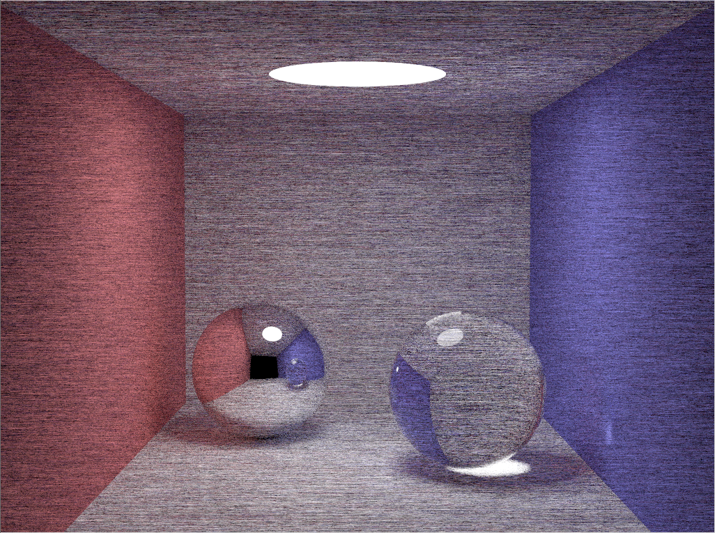 With 1100 samples per pixel, we obtained the final result with a MSE of 51.28 and an execution time of 3.09s.