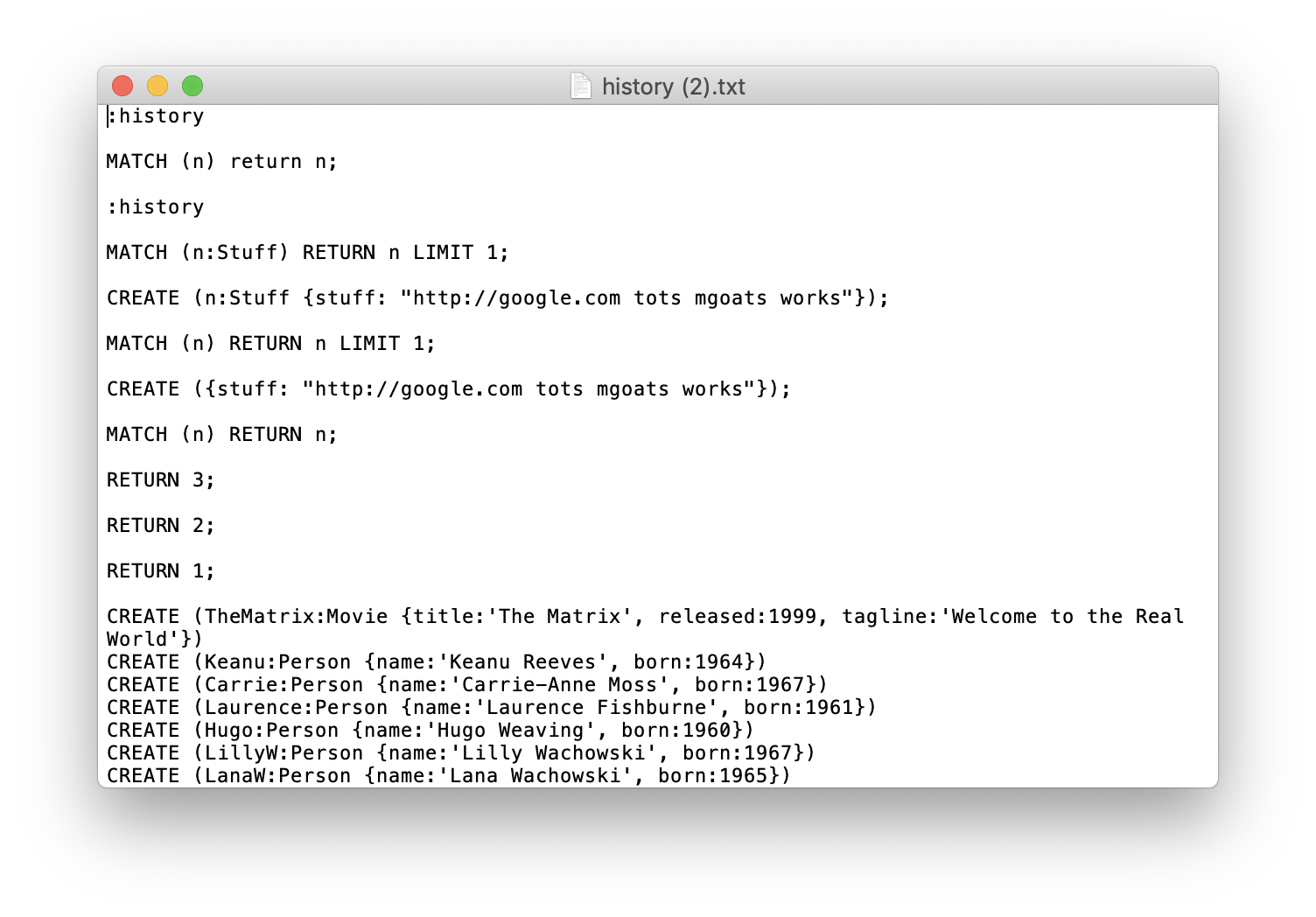Perfect thanks. What's cool though even as :commands are not valid cypher they should still work |