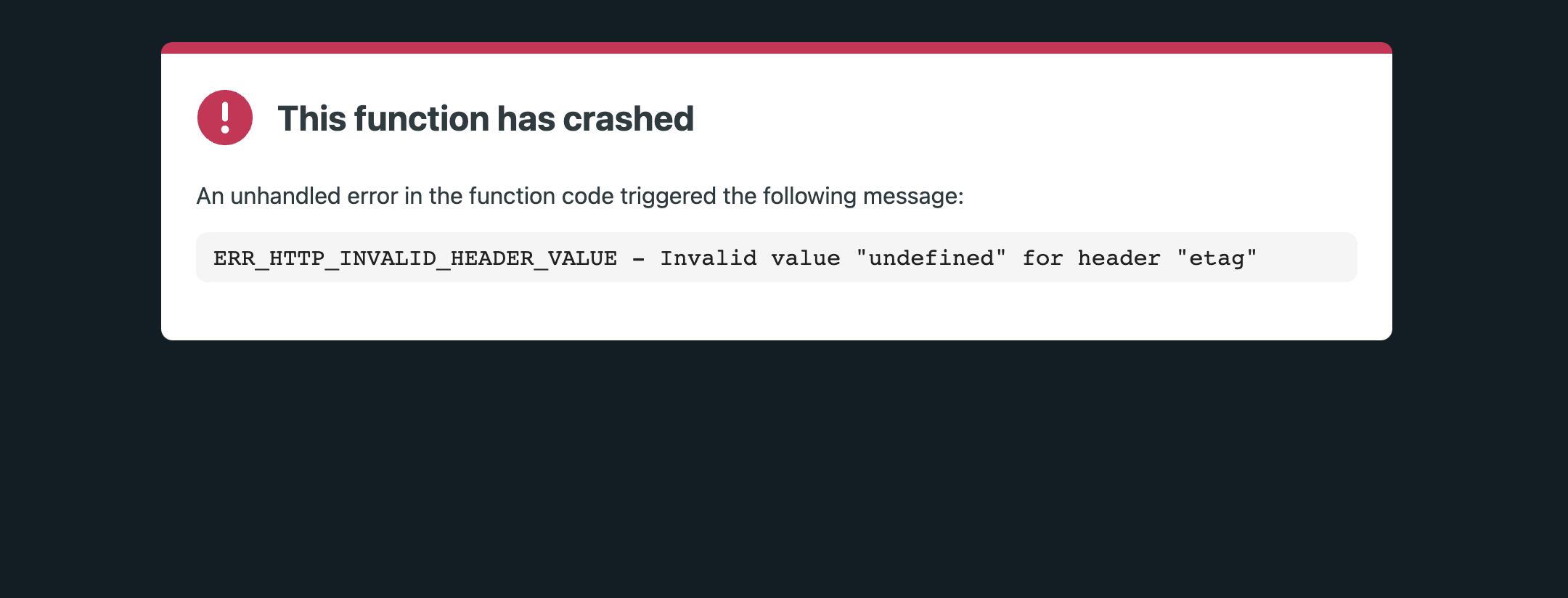 setHeader callthat may throw. When that happens, the entire app crashes.This PR addresses that by gracefully handling the error, showing a log in the terminal and displaying the function error page.