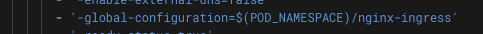 However when the argument -global-congfiguration is set during the deployment of the controller to tell the controller which globalConfiguration resource to use, it is using nginx-ingress.name: