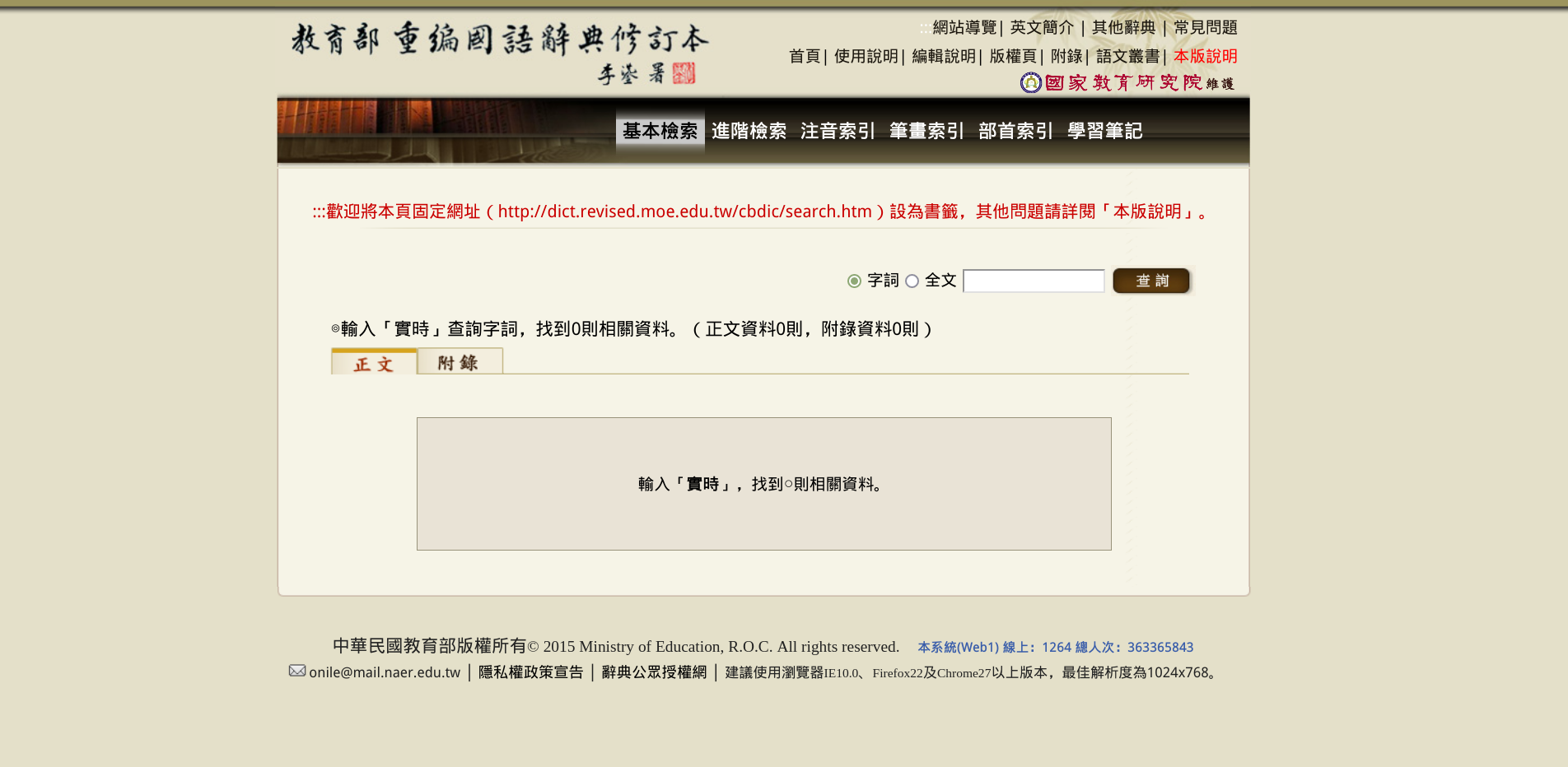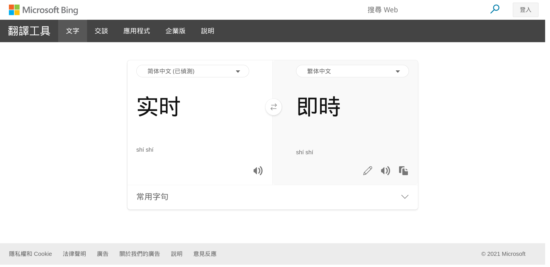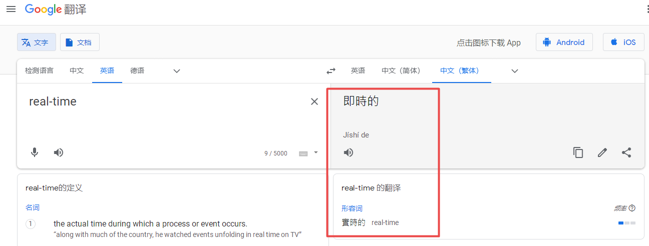 The quality of Google Translation for Traditional Chinese has never been good enough, translation is not just about "you can understand it, that's enough", Google Translation for many scenarios are just using Traditional Chinese character but Simplified Chinese phrase and usages, Bing Microsoft Translator has a different result as you can see: Let's look at a more authoritative resource - the dictionary from Ministry of Education, there is no such term of "實時", even though you converted the character to Traditional Chinese: The term we are using, for zh-tw, Traditional Chinese, is "即時": |