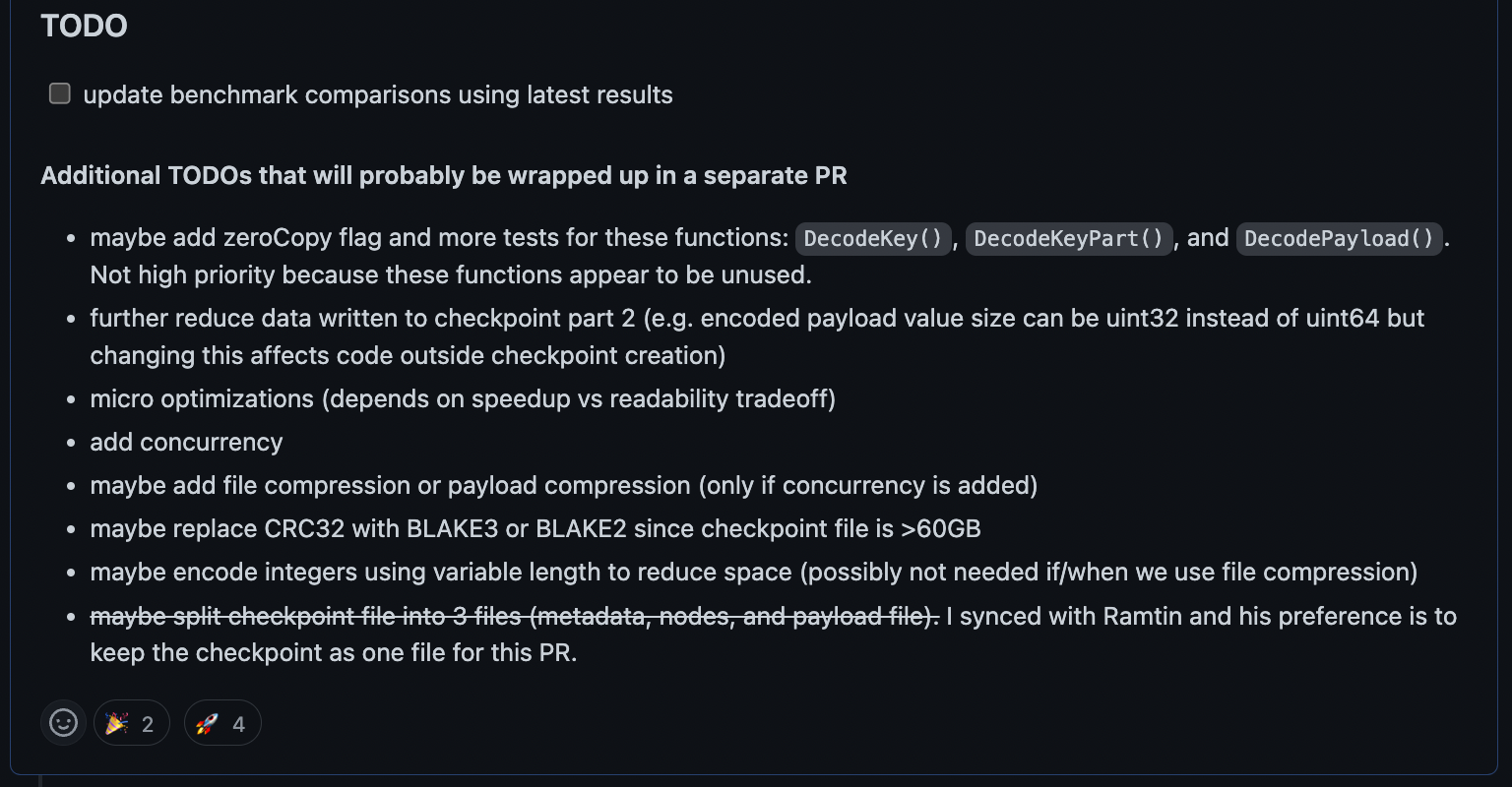 I suggested replacing CRC-32 and adding concurrency in a comment in checkpointer.go: