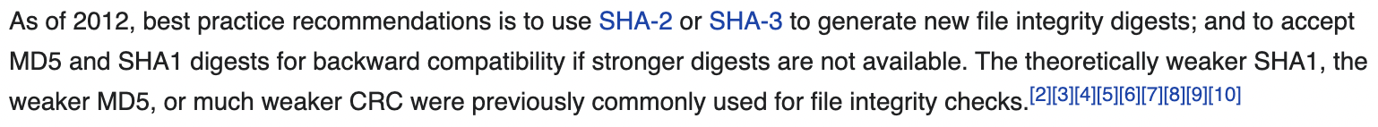 We can replace CRC-32 with a 256-bit hash and use concurrency to reduce loss of speed. Go provides SHA-256 and SHA-512/256. BLAKE2s and BLAKE2 (512-bit) are popular and reasonably fast on most modern CPUs.