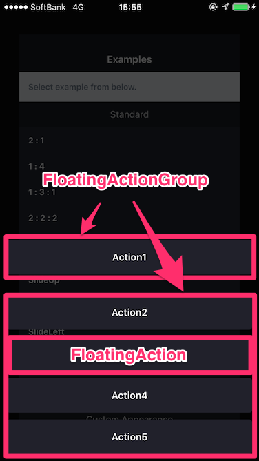import FloatingActionSheetControllerlet action1 = FloatingAction(title: "title") { action in