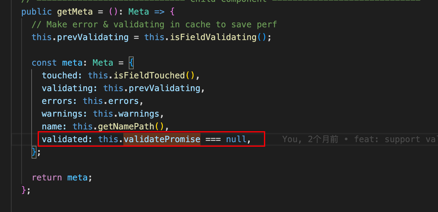 之前我们是根据 validatePromise 是否为 null 来判断是否触发过校验的,但我们之前漏了重置的时候,把 validatePromise 设置为 undefined 了,导致重置后依然是 null, 所以导致点击重置之后校验的状态一直还保留着。
