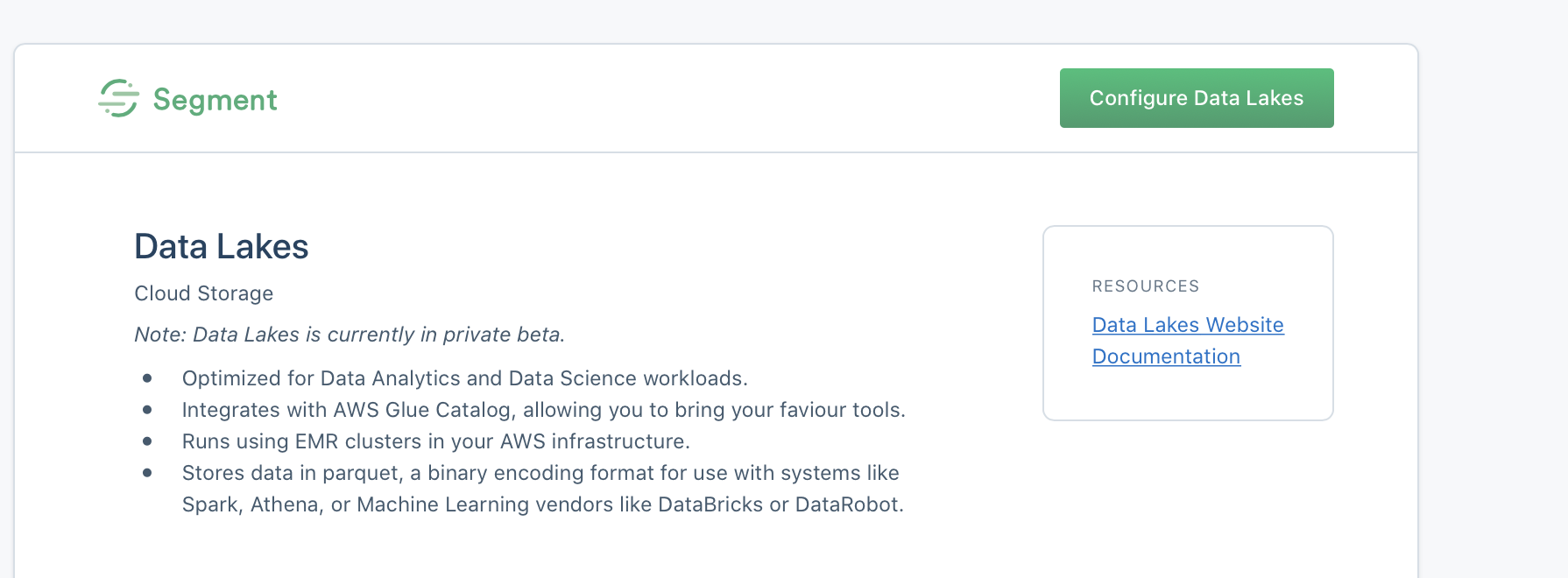 This adds an entry for the new Data Lakes destination, so that customers clicking through the documentation link from the catalog page have some content to view. This is just to mitigate the 404 for now, while we build out real docs on the path to GA.