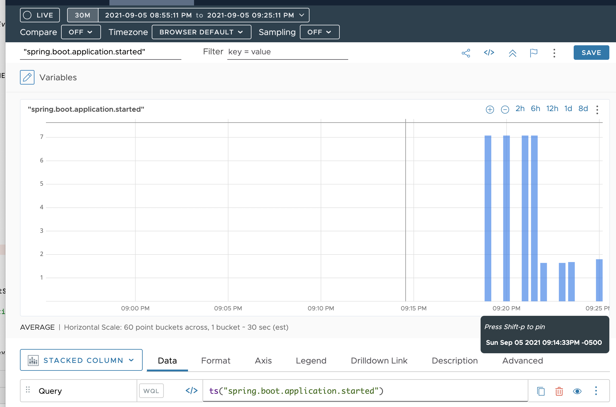 | .builder("spring.boot.application.started", () -> event.getStartupTime().toMillis(), |