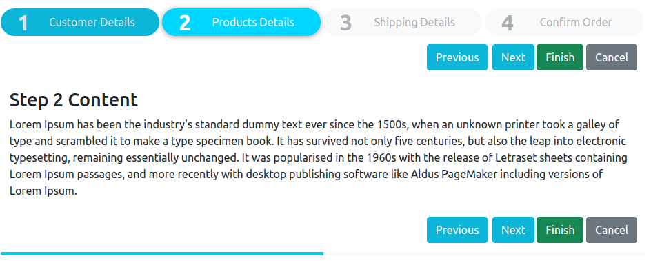 jQuery Smart Wizard is an accessible step wizard plugin for jQuery. Provides a neat, usable and stylish user interface for your forms, checkout screen, registration process, etc. Easy to implement, Bootstrap compatiblity, customizable toolbars, themes and colors, events and Ajax support are few of the features.
